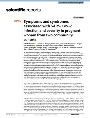 Title: | Symptoms and syndromes associated with SARS-CoV-2 infection and severity in pregnant women from two community cohorts |