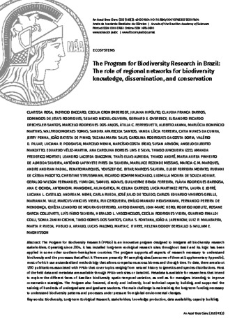 The program for biodiversity research in Brazil: The role of regional networks for biodiversity knowledge, dissemination, and conservation.
