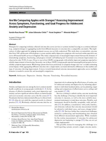 Title: | Are We Comparing Apples with Oranges? Assessing Improvement Across Symptoms, Functioning, and Goal Progress for Adolescent Anxiety and Depression. |