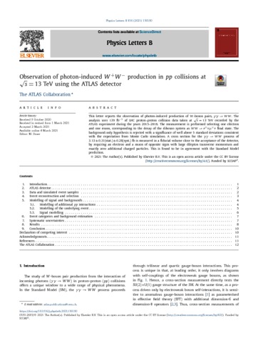 Title: | Observation of photon-induced W+W− production in pp collisions at s=13 TeV using the ATLAS detector |