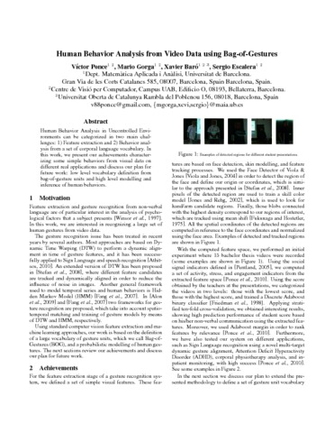 | Title: | Human Behavior Analysis from Video Data Using Bag-of-Gestures |