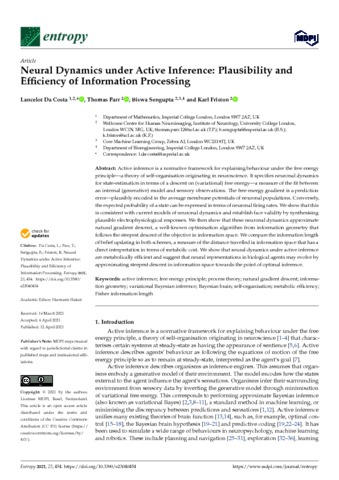 Neural Dynamics under Active Inference: Plausibility and Efficiency of Information Processing.