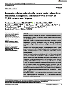 Iatrogenic catheter-induced ostial coronary artery dissections: Prevalence, management, and mortality from a cohort of 55,968 patients over 10 years.