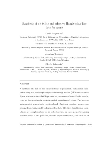 Title: | Synthesis of ab initio and effective Hamiltonian line lists for ozone |