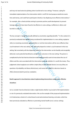 Title: | Will it work here? A realist approach to local decisions about implementing interventions evaluated as effective elsewhere |
