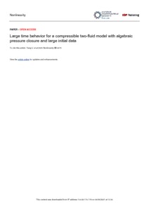 Keywords: | Compressible two-fluid model, weak solutions, large time behavior |