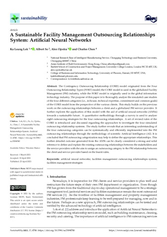 Title: | A Sustainable Facility Management Outsourcing Relationships System: Artificial Neural Networks |