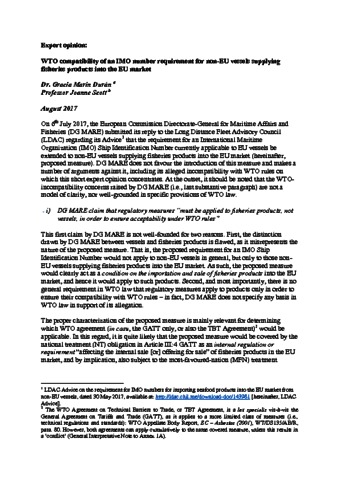 Title: | Expert Opinion: WTO compatibility of an IMO number requirement for non-EU vessels supplying fisheries products into the EU market |