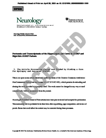 Title: | Proteomics and Transcriptomics of the Hippocampus and Cortex in SUDEP and High-Risk SUDEP Patients |