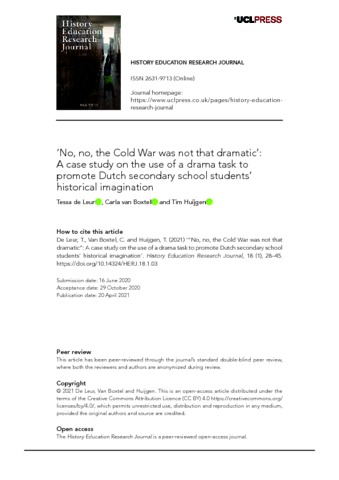 Title: | ‘No, no, the Cold War was not that dramatic’: A case study on the use of a drama task to promote Dutch secondary school students’ historical imagination |
