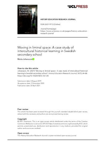 | Title: | Moving in liminal space: A case study of intercultural historical learning in Swedish secondary school |