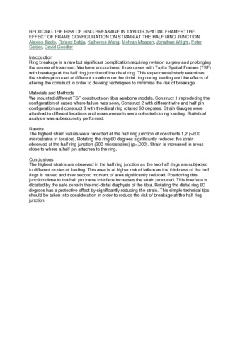 | Title: | Reducing the risk of ring breakage in taylor spatial frames: the effect of frame configuration on strain at the half ring junction |