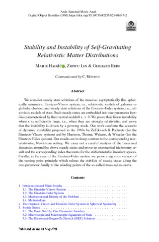 Title: | Stability and Instability of Self-Gravitating Relativistic Matter Distributions |