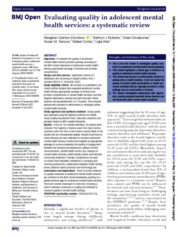 Title: | Evaluating quality in adolescent mental health services: a systematic review |