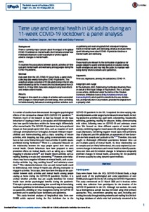 Title: | Time use and mental health in UK adults during an 11-week COVID-19 lockdown: a panel analysis |