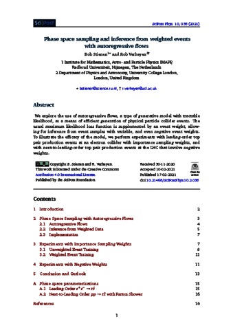 Title: | Phase space sampling and inference from weighted events with autoregressive flows |