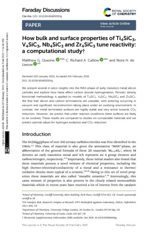 Title: | How bulk and surface properties of Ti₄SiC₃, V₄SiC₃, Nb₄SiC₃ and Zr₄SiC₃ tune reactivity: a computational study |