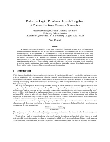 | Title: | Reductive Logic, Proof-search, and Coalgebra: A Perspective from Resource Semantics |