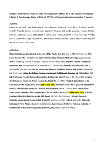 | Title: | Safety, immunogenicity, and transplacental antibody transport of conjugated and polysaccharide pneumococcal vaccines administered to pregnant women with HIV: a multicentre randomised controlled trial |
