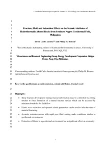 Fracture, fluid and saturation effects on the seismic attributes of rocks from the Southern Negros geothermal field, Philippines.
