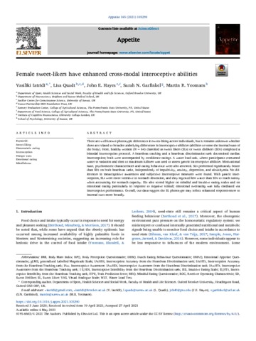 Female sweet-likers have enhanced cross-modal interoceptive abilities.