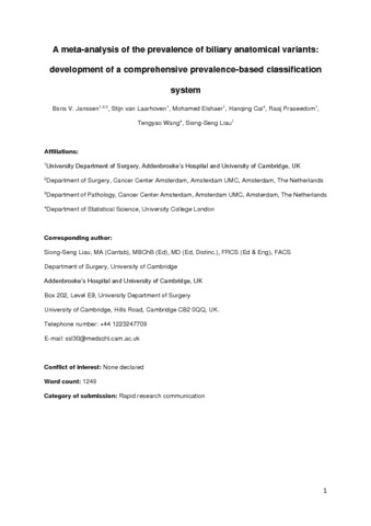 Title: | Comprehensive classification of anatomical variants of the main biliary ducts |