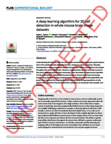 Title: | A deep learning algorithm for 3D cell detection in whole mouse brain image datasets. |