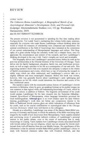 | Title: | Ludek Vacín: The Unknown Benno Landsberger, A Biographical Sketch of an Assyriological Altmeister's Development, Exile, and Personal Life. (Leipziger Altorientalistische Studien.) xvi, 132 pp. Wiesbaden: Harrassowitz, 2019. |