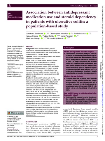 Title: | Association between antidepressant medication use and steroid dependency in patients with ulcerative colitis: a population-based study |