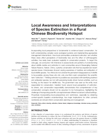 Title: | Local awareness and interpretations of species extinction in a rural Chinese biodiversity hotspot |
