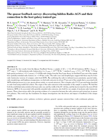 Title: | The quasar feedback survey: discovering hidden Radio-AGN and their connection to the host galaxy ionized gas |