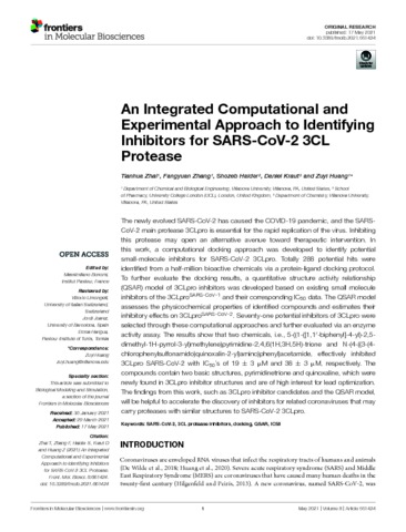 Title: | An Integrated Computational and Experimental Approach to Identifying Inhibitors for SARS-CoV-2 3CL Protease |
