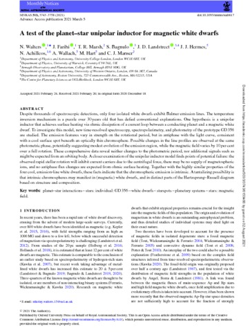 Keywords: | Planet–star interactions, stars: individual: GD 356, white dwarfs, starspots, planetary systems, stars: magnetic field |
