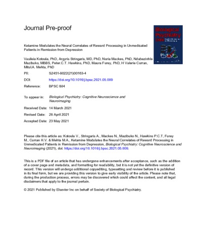 Curran_Ketamine Modulates the Neural Correlates of Reward Processing in Unmedicated Patients in Remission from Depression_Pre-proof.pdf - Accepted Version Download (881kB) | Preview |
