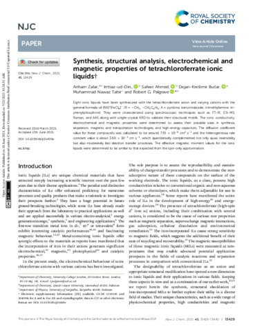 Title: | Synthesis, structural analysis, electrochemical and magnetic properties of tetrachloroferrate ionic liquids |