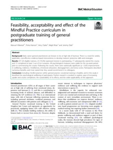 Title: | Feasibility, acceptability and effect of the Mindful Practice curriculum in postgraduate training of general practitioners |