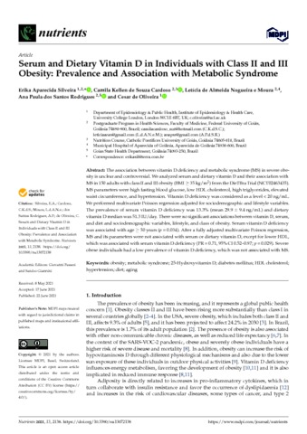 Title: | Serum and Dietary Vitamin D in Individuals with Class II and III Obesity: Prevalence and Association with Metabolic Syndrome |