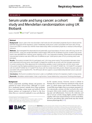 Title: | Serum urate and lung cancer: a cohort study and Mendelian randomization using UK Biobank |