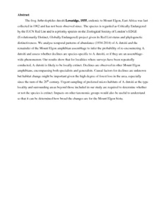 | Title: | Species-specific or assemblage-wide decline? The case of Arthroleptides dutoiti Loveridge, 1935 and the amphibian assemblage of Mount Elgon, Kenya |