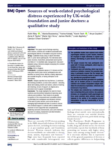 Sources of work-related psychological distress experienced by UK-wide foundation and junior doctors: a qualitative study.