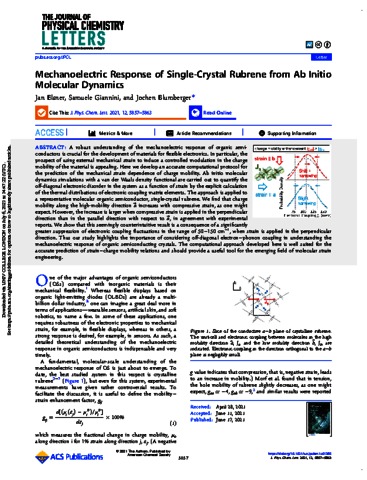 Title: | Mechanoelectric Response of Single-Crystal Rubrene from Ab Initio Molecular Dynamics |