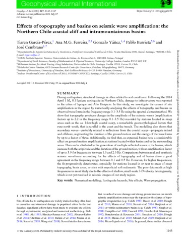 | Title: | Effects of topography and basins on seismic wave amplification: the Northern Chile coastal cliff and intramountainous basins |
