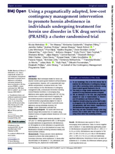 Using a pragmatically adapted, low-cost contingency management intervention to promote heroin abstinence in individuals undergoing treatment for heroin use disorder in UK drug services (PRAISE): a cluster randomised trial.