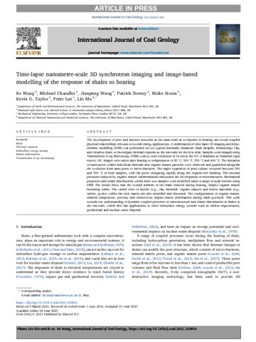 Time-lapse nanometre-scale 3D synchrotron imaging and image-based modelling of the response of shales to heating.