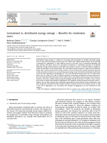 Title: | Centralized vs. distributed energy storage – Benefits for residential users |