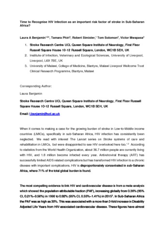 Benjamin_Letter to Lancet_Time to Recognize HIV-Stroke_v4.pdf - Accepted Version Download (192kB) | Preview |