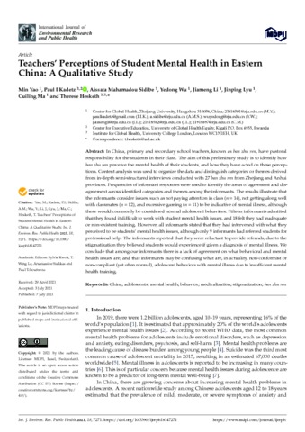 | Title: | Teachers’ perceptions of student mental health in eastern china: A qualitative study |