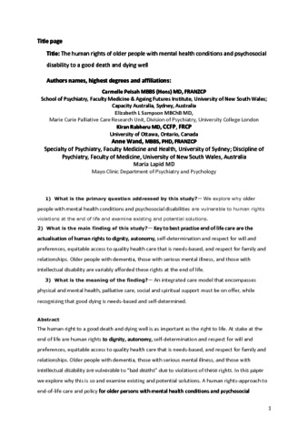 | Title: | The Human Rights of Older People With Mental Health Conditions and Psychosocial Disability to a Good Death and Dying Well |