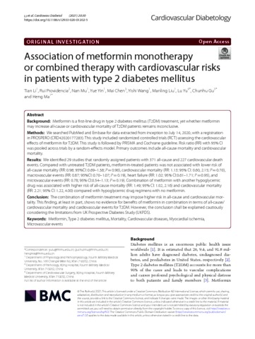 Title: | Association of metformin monotherapy or combined therapy with cardiovascular risks in patients with type 2 diabetes mellitus. |