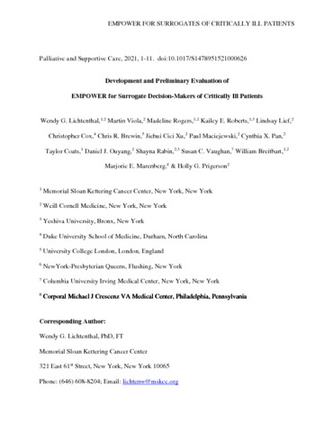 Title: | Development and preliminary evaluation of EMPOWER for surrogate decision-makers of critically ill patients |